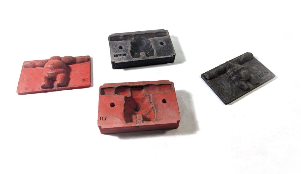 During the investing process, one of the legs ‘floated’ off the sprew. Since time was short, I 3D printed a replacement and did some moderate post-processing. Can you tell which one?
