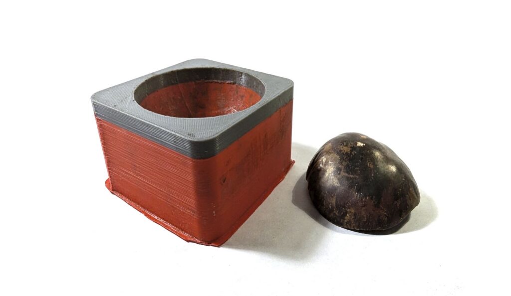 There wasn’t a large enough Dap for the head of the bot in the Basic Metal studio so I made my own! To the right is the lower half of steambots cranium.