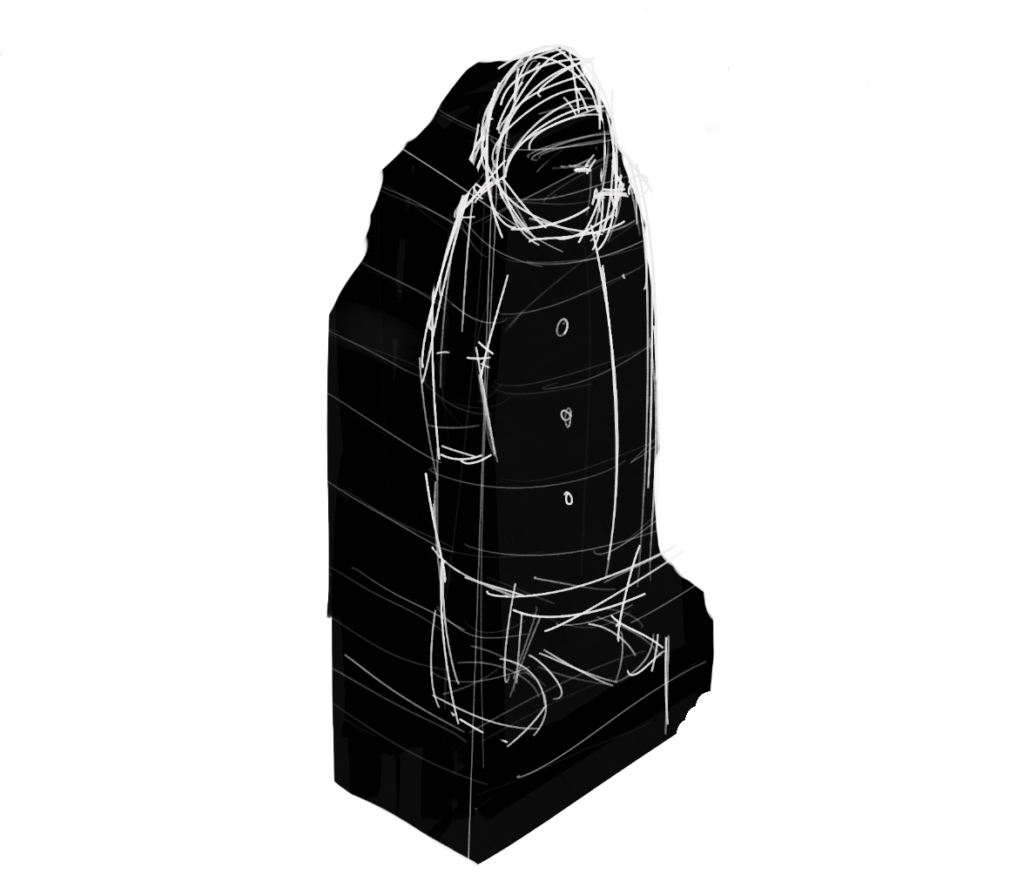 Even though I was committed to the sailor concept, I didn’t want to just replicate the existing vernacular object. I had recently seen an article about Michelangelo’s Prisoners. These statues are all ‘unfinished’ works where the human form is encased (escaping?) from the marble block. The Art and The Material co-exist. So for my Sailor sculpture, I would have the form emerging from the unfinished block of wood (depicted by the blockiness surrounding the figure above).