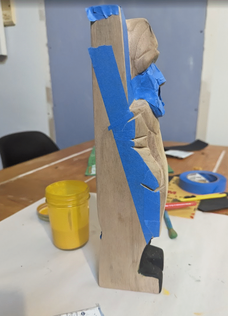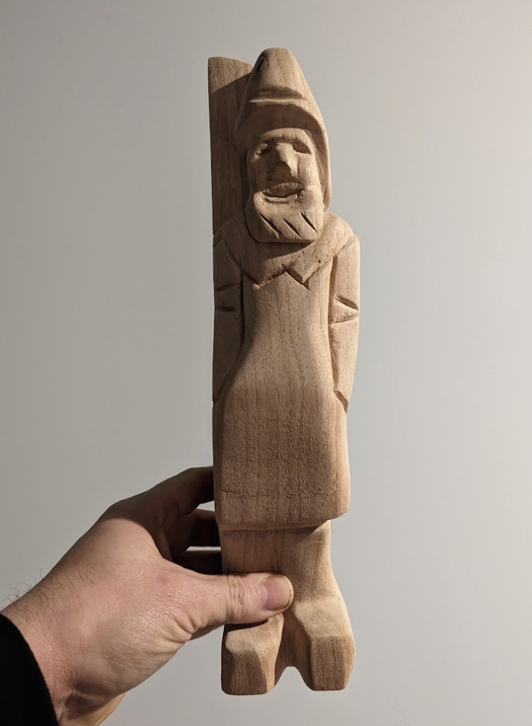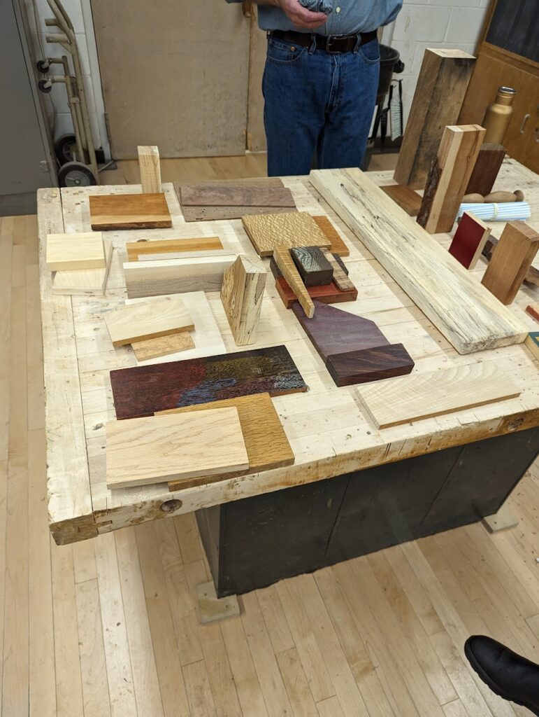 We were presented with a selection of wood blocks. Given the ratio of the standing figure, I chose the standing (Oak) block on the right edge of the table.