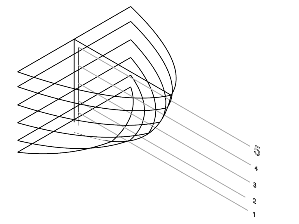 Also, I would not have been able to use digital tools. So working from the basic shapes in the plans, I created a set of closed curves (Rhino3D) that echoed the desired shape of the hull by using a profile curve as the mid-point.