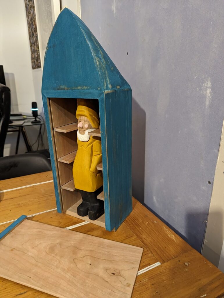 For this project, I utilized minimal digital tooling — the analog approach suited the rustic, antique nature of the sailor. In an earlier concept, I wanted to integrate the block portion of the sailor into the box. You can see it here.