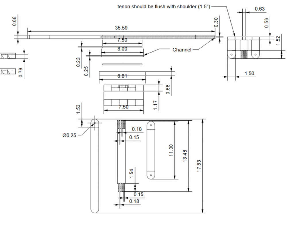 With my mind made up on the Prion Table, I had to again produce 1:1 plans. Rhino3D has built-in drafting tools so I again ‘cheated’ by using technology rather than analog pencil and paper.