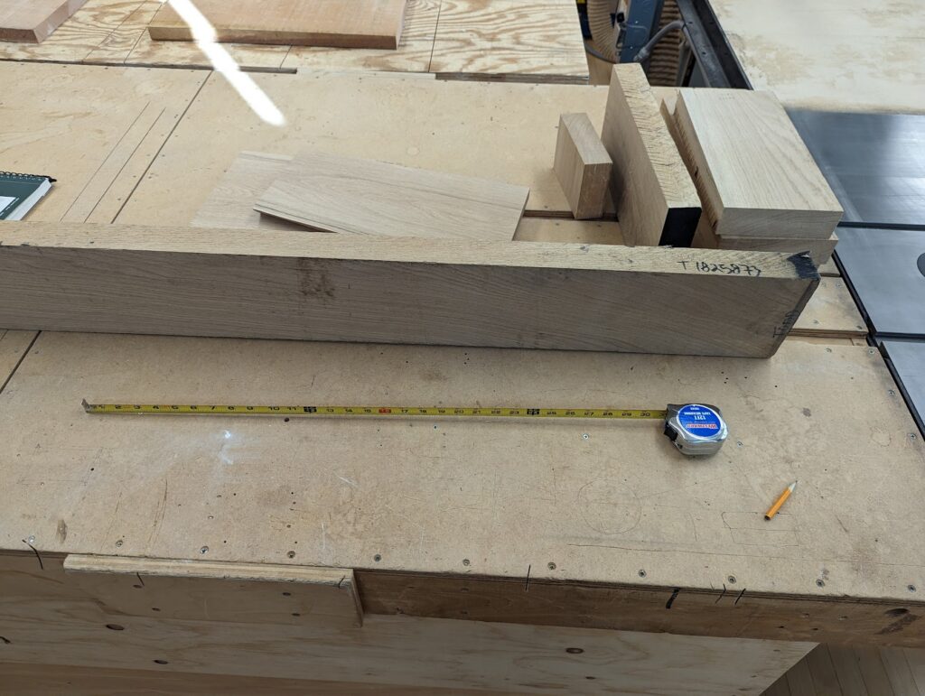 We took a field trip to a lumber yard (Ronsen Piano Hammer co). We would build our piece out of rough cut lumber. A single 6″ x 10′ x 5/4″ white oak board would be jointed, planed, cut, sanded into a complex object. Hence, the importance of plans not just for design intent but also for material procurement.